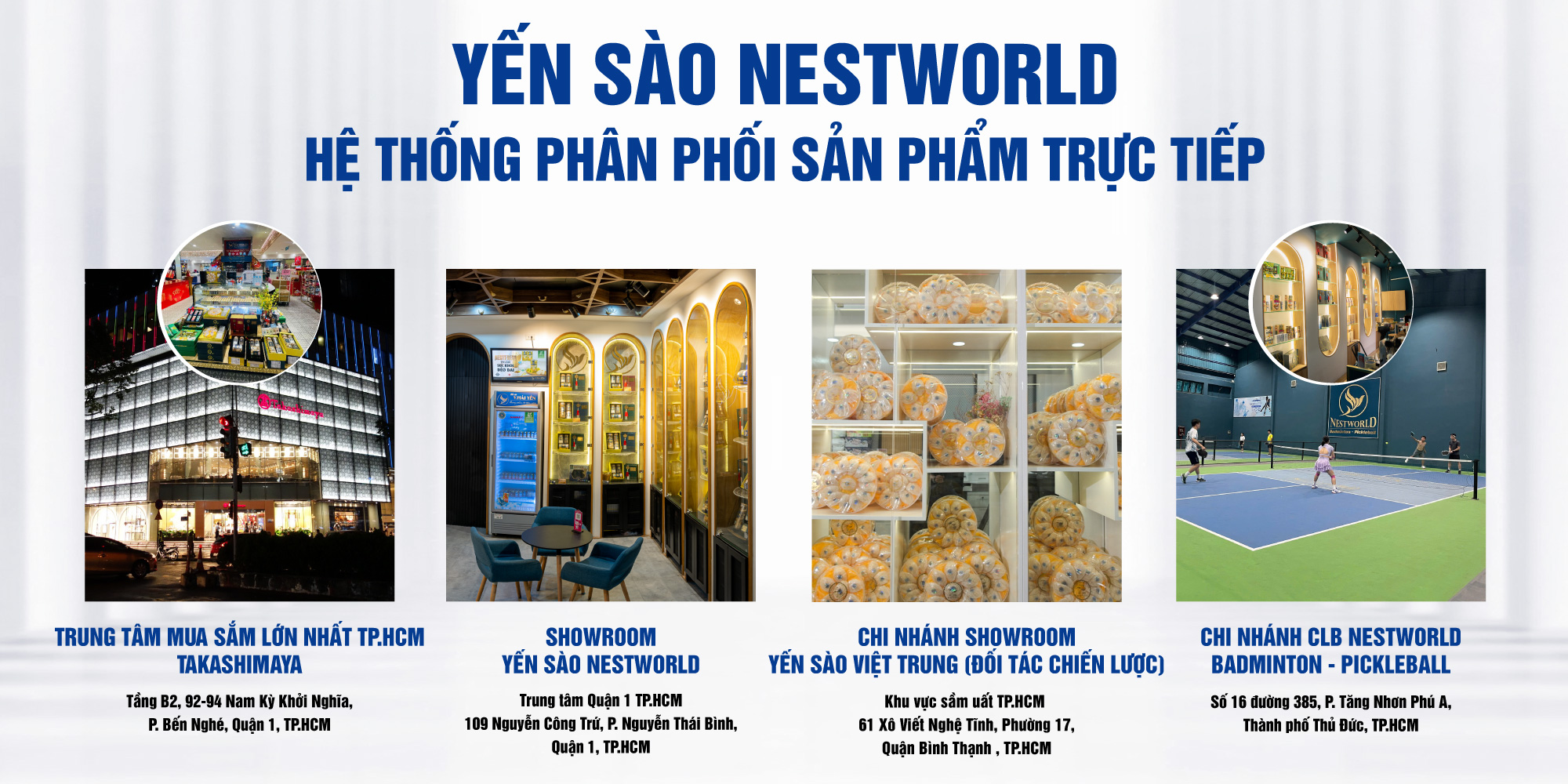 - Showroom Yến Sào Nestworld: 109 Nguyễn Công Trứ, Phường Nguyễn Thái Bình, Quận 1, TPHCM