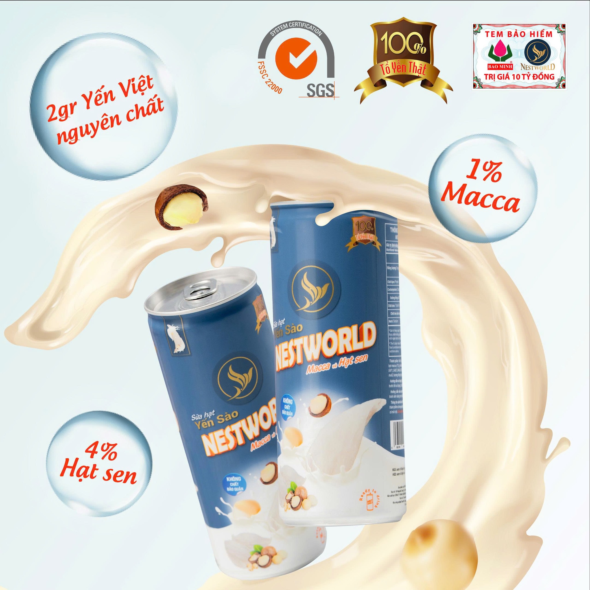 Đây là sữa hạt yến dạng lon lần đầu xuất hiện trên thị trường, chứa 2gr yến Việt nguyên chất được khai thác từ hệ thống nhà yến trải dài trên toàn quốc của Nestworld.