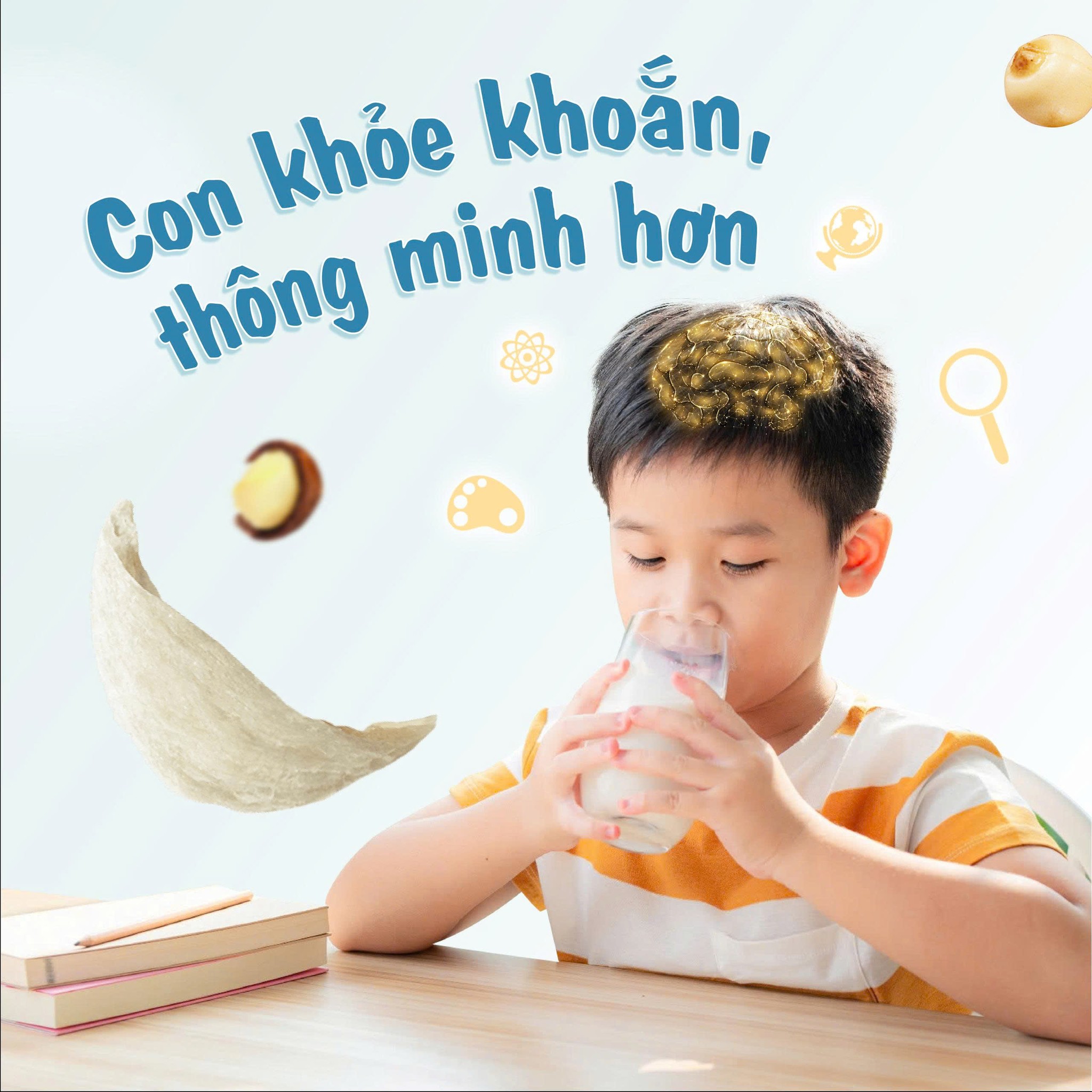 Để tăng thêm dưỡng chất & hương vị thơm ngon, 4% hạt sen và 1% macca cùng đậu phộng đã được đưa vào thành phần sữa, mang đến các lợi ích sức khỏe vượt trội cho bé và cả gia đình: