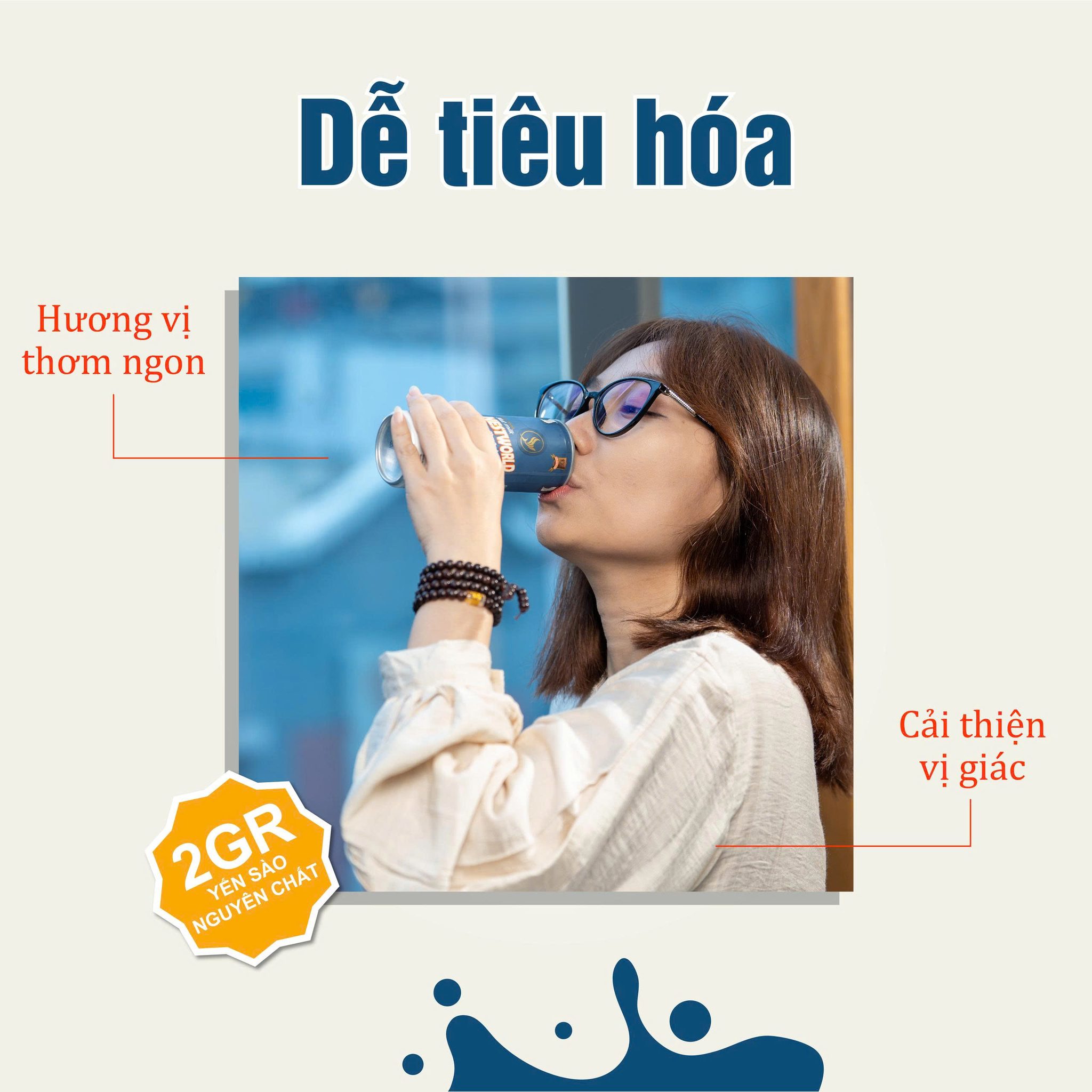 Yến sào được chế biến theo công thức sữa hạt với hương vị thơm ngon, kích thích vị giác, dễ tiêu hóa, dễ hấp thụ dưỡng chất mà không gây kích ứng cho người bệnh có hệ tiêu hóa kém.