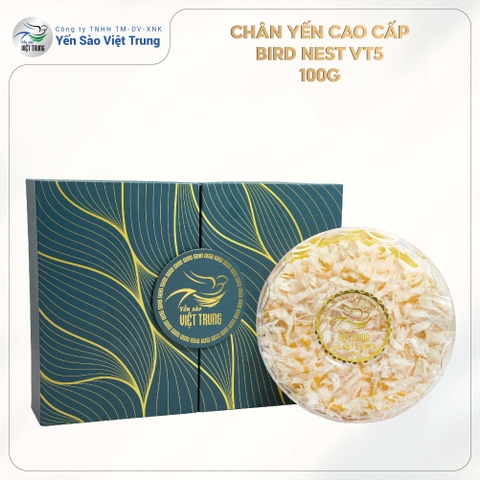 Chân Yến Cao Cấp Bird Nest VT5 là dòng sản phẩm cao cấp thuộc phân khúc tổ yến nguyên chất của Yến Sào Việt Trung. Sản phẩm được thu hoạch từ phần chân của tổ yến – nơi tập trung nhiều sợi yến dày, chắc và dai. Khác với loại yến thô chưa sơ chế, chân yến VT5 đã qua xử lý kỹ lưỡng, loại bỏ gần như hoàn toàn lông và tạp chất, giúp bạn tiết kiệm thời gian sơ chế mà vẫn giữ được trọn vẹn hương vị và dưỡng chất tự nhiên.